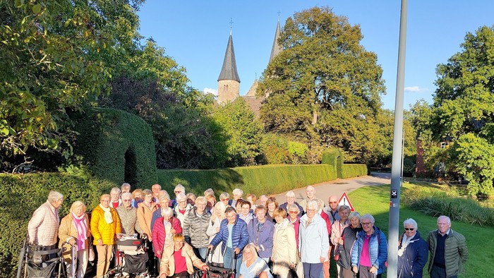 Gut meinte es die Sonne mit der Reisegruppe der Evangelischen Kirchengemeinde Dortmund-Berghofen. Zwar schränkten noch herbstliche Nebelschwaden die Sicht ein, als 42 Gemeindemitglieder in der Frühe den Bus bestiegen. Aber der Kurgarten von Bad Pyrmont war bereits sonnendurchflutet. Die erste Station der Reisegruppe zeigte sich von ihrer besten Seite. Besonders der Palmengarten beeindruckte die Besucher*innen. Viel zu kurz war für viele aus der Reisegruppe die Aufenthaltszeit in diesem großartig angelegten Kurpark. Aber das Grohnder Fährhaus, direkt an der Weser gelegen, hatte schon den Tisch für das Mittagessen gedeckt. Gestärkt begab sich die Reisegruppe danach auf den Weg zum letzten Reiseziel des Tages, zum Kloster Möllenbeck bei Rinteln. Eine engagierte und kundige ehrenamtliche Mitarbeiterin der Reformierten Kirchengemeinde führte in der Kirche durch die abwechslungsreiche Geschichte des Klosters. In ihren humorvollen Ausführungen leuchtet immer wieder das beeindruckende Gottvertrauen der Menschen auf. Sie wussten, auf alle Herausforderungen für den Bestand des Klosters bis in die Gegenwart hinein eine Antwort zu geben. Die Reisegruppe wärmte sich im Klostercafe bei Torte und Kaffee auf, ehe eine Andacht in der Klosterkirche das Ausflugsprogramm abschloss. Die Dämmerung setzte bereits ein, als der Gemeindeausflug in Berghofen endete. Bei der Verabschiedung wurde der Reiseleitung, Pfarrerin Sabine Breithaupt-Schlak und Pfarrer i. R. Joachim Breithaupt, rückgemeldet: Im nächsten Jahr sind wir wieder dabei!